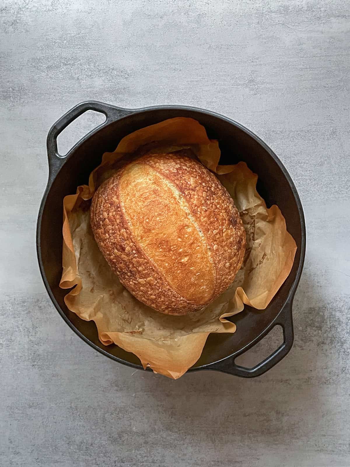 Shape the dough into a loaf pan to support its structure and prevent collapse. Follow the same chilling and baking steps as above. Read more about how to bake sourdough in a loaf pan.